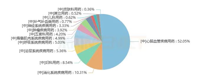此外,消化系統(tǒng)疾病用藥占比10.31%,婦科用藥占比8.54%,呼吸系統(tǒng)疾病用藥、泌尿系統(tǒng)疾病用藥占據(jù)的市場份額均超過5%。