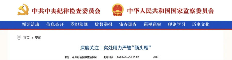 4月30日,中紀(jì)委在《深度關(guān)注丨實(shí)處用力嚴(yán)管“領(lǐng)頭雁”》中以廣東省廣州市紀(jì)委監(jiān)委的實(shí)踐為經(jīng)驗(yàn)強(qiáng)調(diào)對(duì)“一把手”的監(jiān)管。