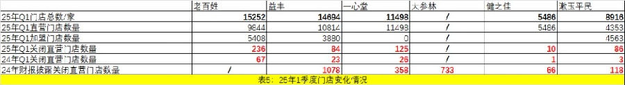 據(jù)賽柏藍統(tǒng)計,2025年第一季度,老百姓、益豐、一心堂、大參林、漱玉平民、健之佳六大上市連鎖藥店關閉直營門店541家,各大連鎖關店的數(shù)量均大于2024年第一季度。2024年全年,六大上市連鎖關閉直營門店2353家。