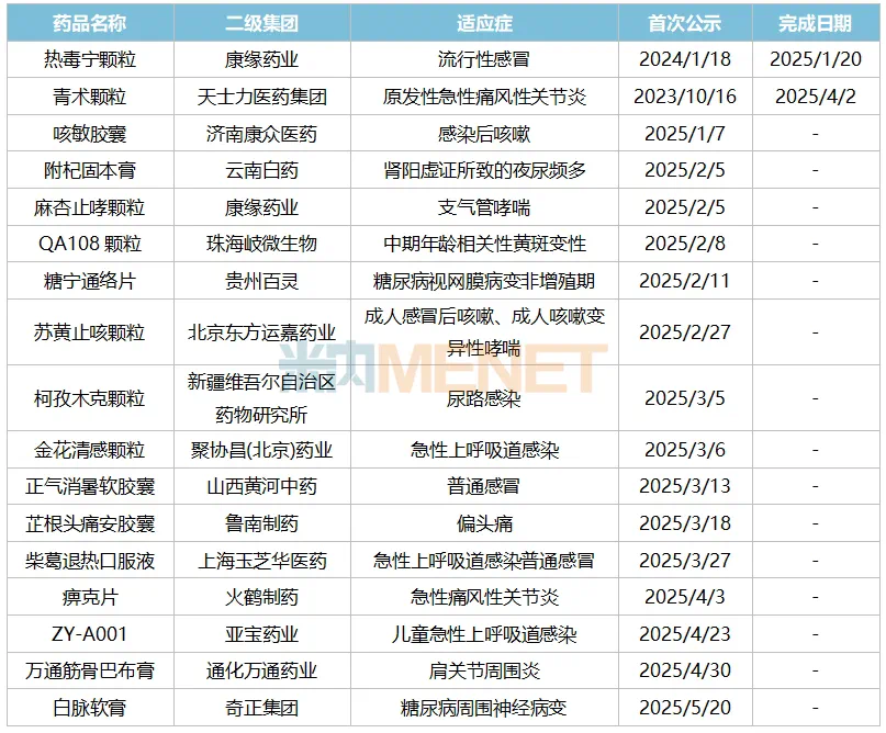 表1:2025年1-5月完成/公示III期臨床的中藥新藥