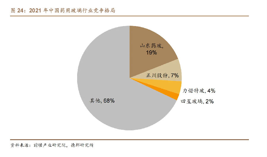 目前我國(guó)各類藥用包材生產(chǎn)企業(yè)逾千家,其中藥用玻璃生產(chǎn)企業(yè)眾多,包括山東藥玻、格雷斯海姆、肖特公司、正川股份、力諾藥包、滄州四星等在內(nèi)的大型生產(chǎn)企業(yè)占據(jù)了主要的市場(chǎng)份額。