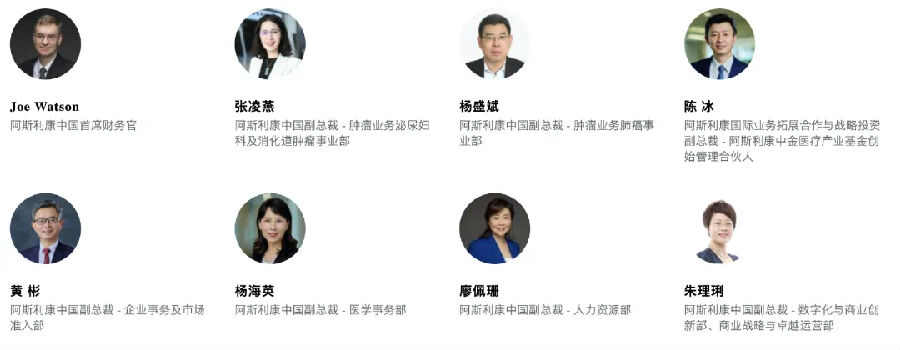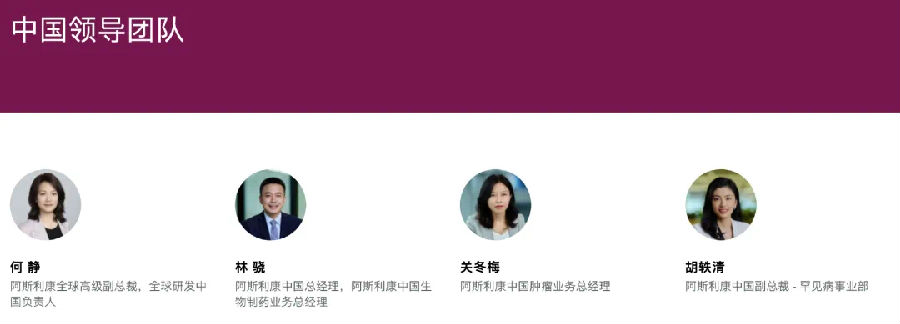 阿斯利康中國領(lǐng)導(dǎo)團(tuán)隊如下