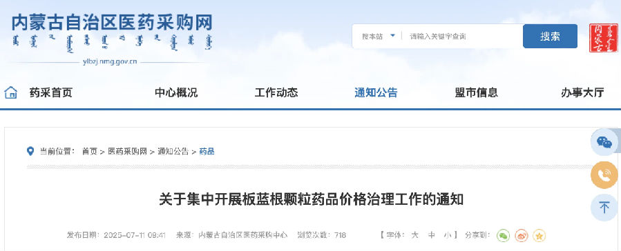 中成藥掛網(wǎng)價格治理風(fēng)暴來襲。 01 多地行動 大批中成藥被點名 近日,一則關(guān)于《醫(yī)藥價格風(fēng)險線索通報(第一批)》通知在業(yè)內(nèi)流傳,明確提出將對相關(guān)高價產(chǎn)品及企業(yè)進行規(guī)范。 通報顯示,當(dāng)前全國掛網(wǎng)的8.8萬余種中成藥中,有個別中成藥在部分省份的日均治療費用是該省同種藥品最低日均治療費用的5倍以上。此次集中整治日均治療費用價差大于10倍及以上,且掛網(wǎng)價高于100元的疑似高價中成藥,引導(dǎo)企業(yè)規(guī)范價格行為。 全國中成藥掛網(wǎng)價格治理按下加速鍵。賽柏藍梳理發(fā)現(xiàn),目前已經(jīng)有不少地方拉開中成藥掛網(wǎng)藥品價格治理的大幕。 截至目前,全國至少有28個省份完善藥品掛網(wǎng)規(guī)則,中成藥成為規(guī)則調(diào)整的重點對象。其中差比價規(guī)則被普遍應(yīng)用,多省明確規(guī)定“中成藥申報掛網(wǎng),需按同給藥途徑同劑型藥品的日均治療費用差比價、包裝數(shù)量和裝量差比價計算”,確保不同規(guī)格、包裝間價格關(guān)系合理。 同時,大批省份設(shè)定價格容忍區(qū)間,普遍將掛網(wǎng)價控制在同組最低價的3倍及以內(nèi)。超過3倍通常被納入黃色預(yù)警(黃標(biāo)),超過5倍則會被納入紅色預(yù)警(紅標(biāo))。 目前來看,針對特定中成藥治理,地方正在密集行動。 7月11日,河北省醫(yī)用藥品器械集中采購中心發(fā)布《關(guān)于公布符合掛網(wǎng)條件的中成藥通知》,將符合河北中成藥掛網(wǎng)規(guī)則的42個中成藥產(chǎn)品進行掛網(wǎng),包括逍遙丸(濃縮丸)、小兒柴桂退熱顆粒、壯骨止痛膠囊等。賽柏藍梳理發(fā)現(xiàn),今年來,河北省已經(jīng)至少公布過13批類似的通知,大批常用中成藥被納入。 7月10日,內(nèi)蒙古自治區(qū)醫(yī)藥采購中心發(fā)布通知,要求企業(yè)依據(jù)“中成藥日治療費用不高于5元”的原則,重新核算板藍根(無糖型)的價格。日治療費用低于5元的,價格治理按5元計,即5元,8袋/日,每袋0.625元。并據(jù)此通過差比價規(guī)則(無糖型/有糖型=1.1)計算有糖型產(chǎn)品的制劑和包裝價格。 賽柏藍梳理發(fā)現(xiàn),此次公布了134個板藍根顆粒產(chǎn)品。內(nèi)蒙古按照“顏色”對藥品進行管理,拒絕調(diào)價者,價格高于最低價3倍納入黃標(biāo),高于5倍納入紅標(biāo)管理。 此前,江蘇省公布的多批藥品預(yù)警情況中,不少中成藥被納入。江蘇針對價格異常偏高的藥品采取分級管理措施,將預(yù)警的藥品標(biāo)識分“黃色”“紅一星”“紅二星”“紅三星”。江蘇省對列入價格預(yù)警范圍的藥品,重點加強議價和采購監(jiān)測;對采購預(yù)警藥品數(shù)量和金額排名靠前的醫(yī)療機構(gòu),由醫(yī)療保障部門約談并督促整改,情節(jié)嚴重的報同級紀檢監(jiān)察部門。 更嚴厲的是,江蘇蘇州醫(yī)保局針對一批中成藥掛網(wǎng)藥品價格及支付標(biāo)準(zhǔn)進行調(diào)整,并明確規(guī)定:在江蘇省陽光采購平臺標(biāo)示為掛網(wǎng)紅色價格預(yù)警狀態(tài),且江蘇省醫(yī)保目錄庫內(nèi)無支付標(biāo)準(zhǔn)的藥品,醫(yī)保統(tǒng)籌基金不予支付(8月1日起執(zhí)行)。 02 集采同步進行 規(guī)則優(yōu)化、繼續(xù)擴圍? 當(dāng)前中成藥掛網(wǎng)價格治理已形成 “集采定價+掛網(wǎng)聯(lián)動+動態(tài)監(jiān)測”同步進行。 隨著中成藥集采在全國范圍內(nèi)鋪開,大批中成藥已經(jīng)實現(xiàn)降價,如湖北牽頭的三批中成藥集采平均降幅分別為42.27%、49.36%、約68%,最高降幅分別為82.63%、76.80%、超95%。 全國中成藥聯(lián)盟集采產(chǎn)品降幅明顯來自于規(guī)則設(shè)計。