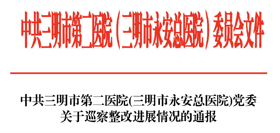 近日,福建三明市第二醫(yī)院發(fā)布《關(guān)于巡察整改進(jìn)展情況的通報(bào)》。