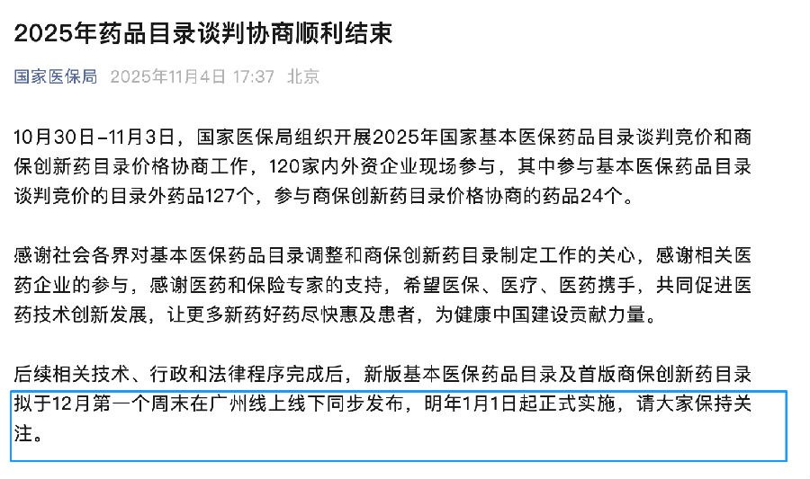 剛剛!國家醫(yī)保局公布,2025版醫(yī)保目錄發(fā)布、執(zhí)行時間