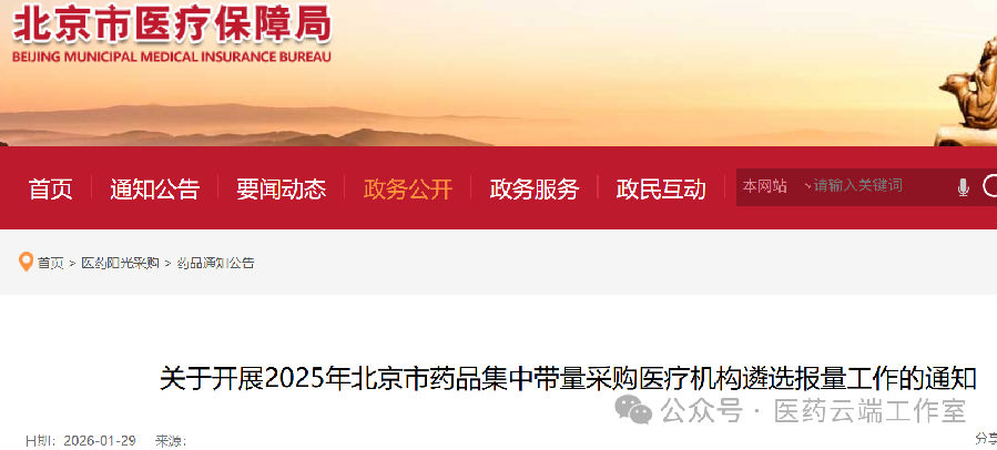 1月29日,北京發(fā)出《于開(kāi)展2025年北京市藥品集中帶量采購(gòu)醫(yī)療機(jī)構(gòu)遴選報(bào)量工作的通知》,通知顯示,2025年北京市藥品集中帶量采購(gòu)企業(yè)報(bào)價(jià)環(huán)節(jié)已完成?,F(xiàn)組織醫(yī)療機(jī)構(gòu)對(duì)相關(guān)候選藥品開(kāi)展遴選與需求量填報(bào)工作。報(bào)量時(shí)間為:1月29日9時(shí)至2月6日18時(shí)。